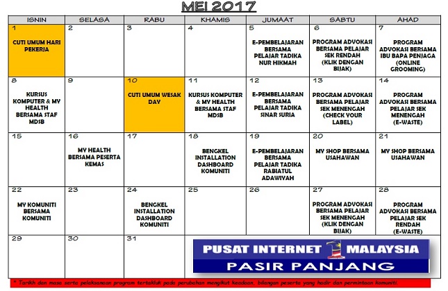 JADUAL AKTIVITI BULAN MEI 2017