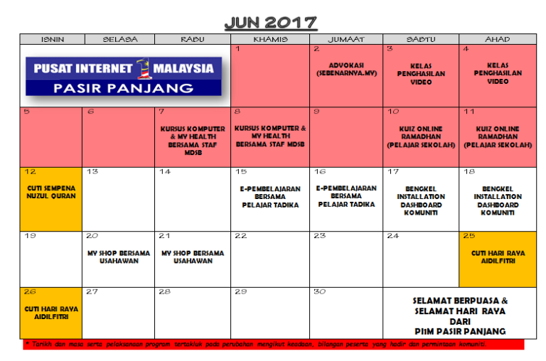 JADUAL AKTIVITI BULAN JUN 2017