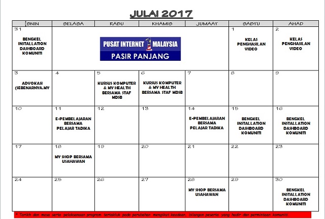 JADUAL AKTIVITI BULAN JULAI 2017