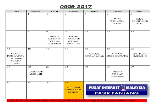 JADUAL AKTIVITI BULAN OGOS 2017