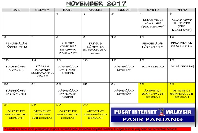 JADUAL AKTIVITI BULAN NOVEMBER 2017