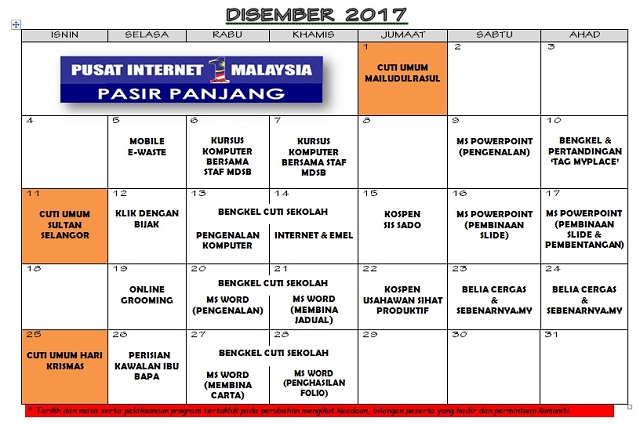 JADUAL AKTIVITI BULAN DISEMBER 2017