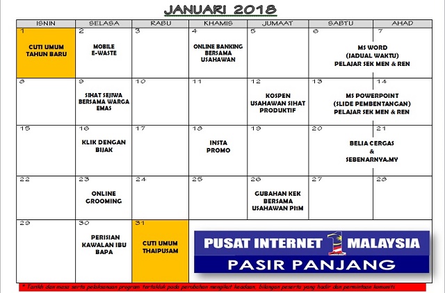 JADUAL AKTIVITI BULAN JANUARI 2018