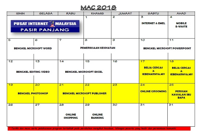 JADUAL AKTIVITI BULAN MAC 2018