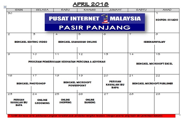 JADUAL AKTIVITI BULAN APRIL 2018