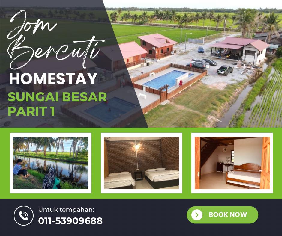 Media Sosial : Facebook – Homestay Sungai Besar PT1, Tiktok – Homestay Sungai Besar PT1