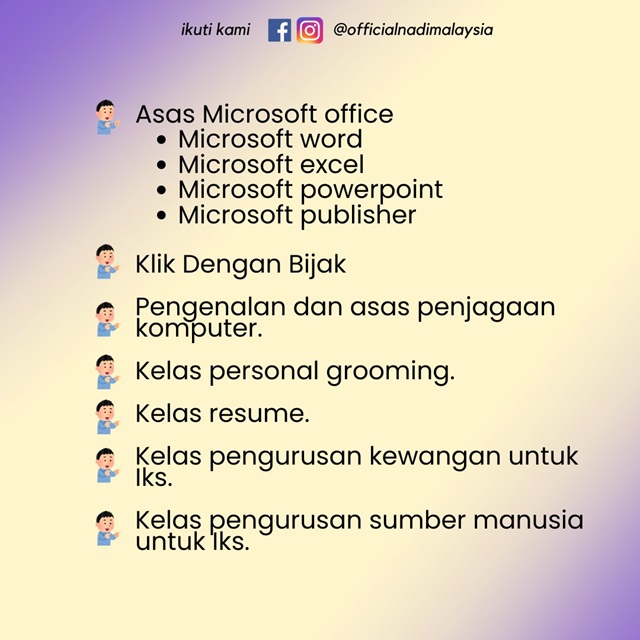 Setiap staff di NADI telah mengikuti kelas yang sediakan untuk mereka bagi mengajar komuniti setempat. Komuniti boleh mengambil peluang ini untuk belajar bersama NADI. Hubungi NADI Pasir Panjang untuk mengetahui maklumat lanjut.